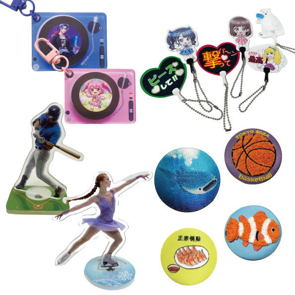 「アクリル系商品」と「缶バッチ」は日本の提携先工場で生産しており、100個~商品化可能です。